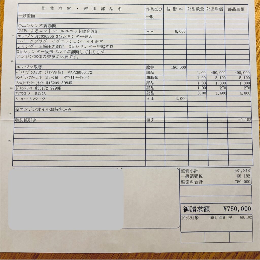 この値引きは、こちらからお願いしたわけではなく、整備工場側の配慮でした。
